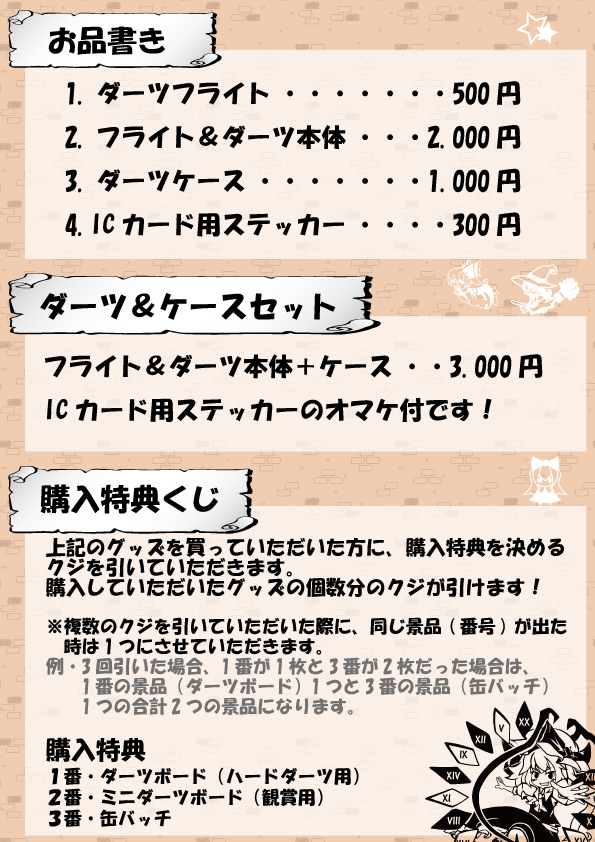 また、今回から当サークルのステッカー(東方ICカード用ステッカー第一弾~第三弾)を貼ったカード(または他の物)を、会計時に見せていただいた方には購入特典クジを1回プラスするキャンペーンをしようかと思っております。