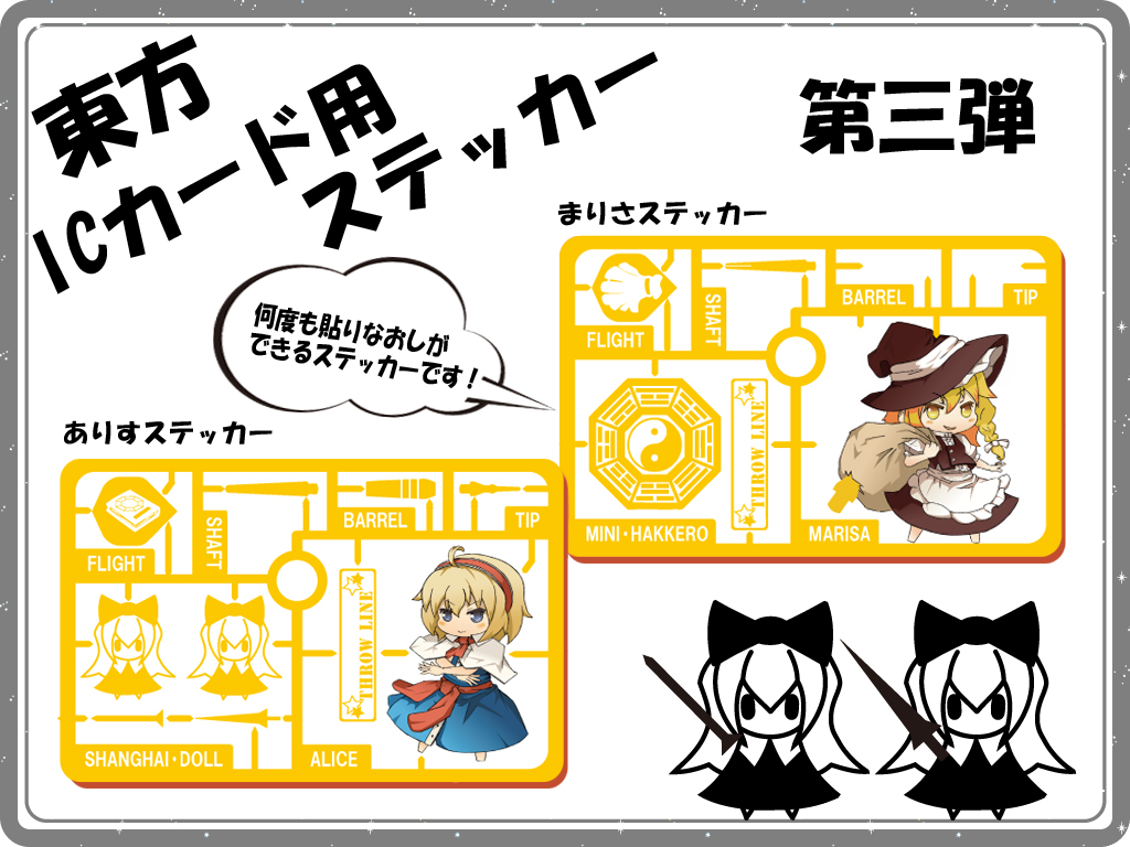 第一弾からお馴染みのプラモキット風ステッカーで、今回はアリスと魔理沙のステッカーです!