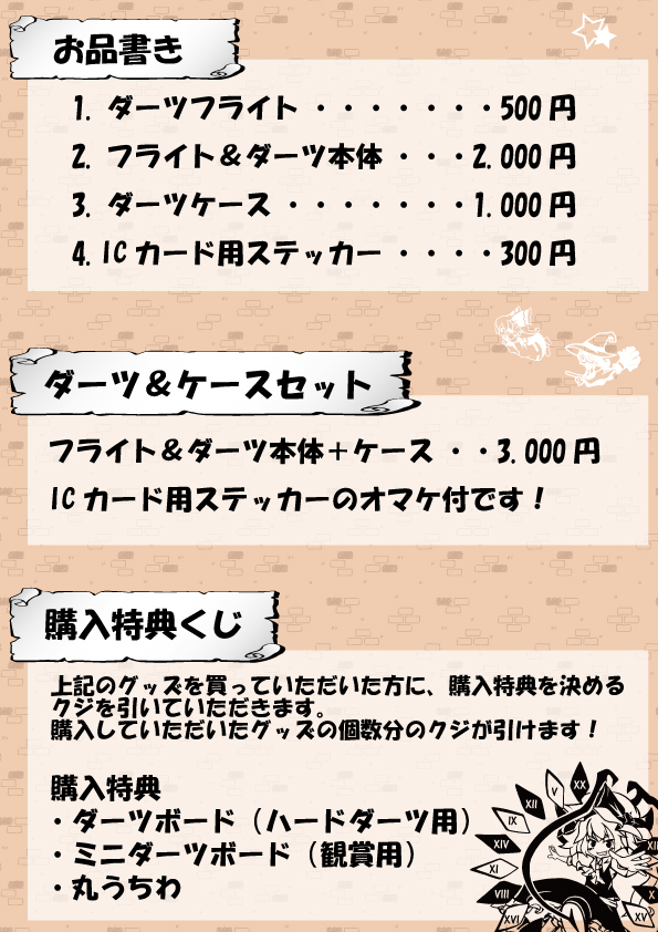 東方のダーツ関連グッズを頒布し始めて半年が経ち、「友達に頼まれて」「HPを見て」と言ってくださる方が多くなりとても嬉しいです。